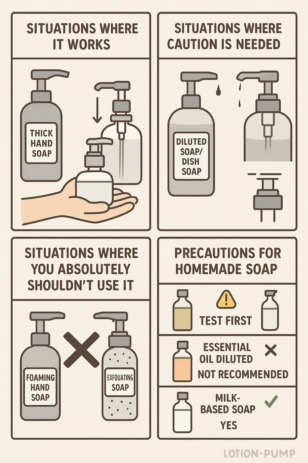 | Zeep soort | Werkt in Lotionpomp? | Belangrijke stappen |