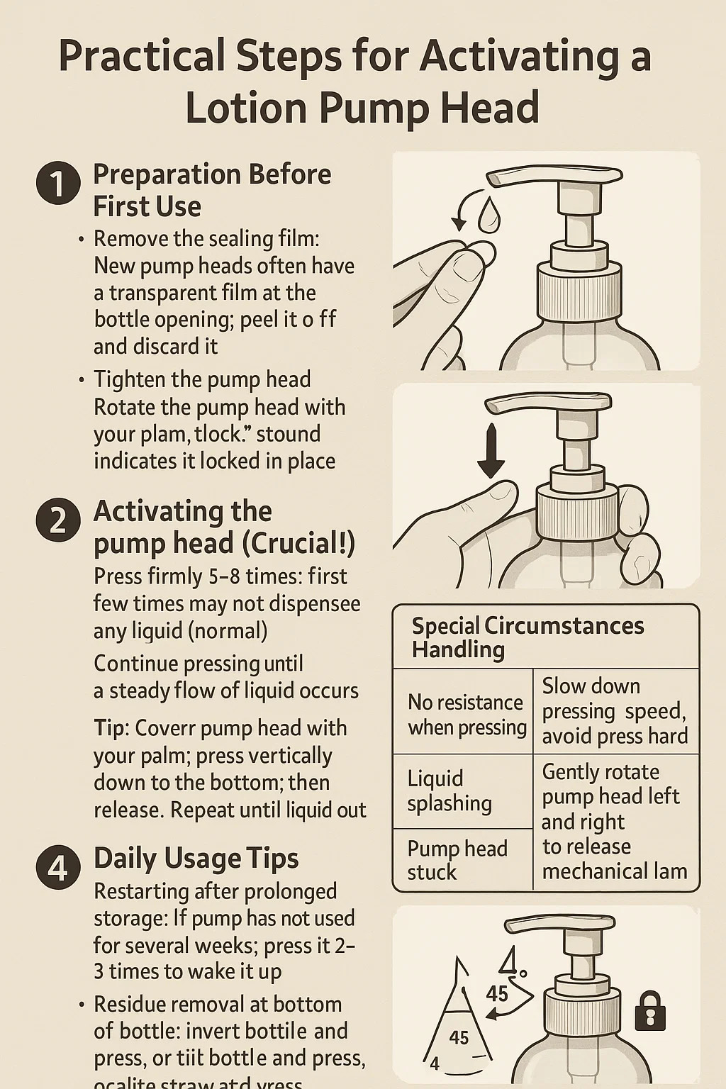 Praktische stappen voor het activeren van een lotion Pomp hoofd