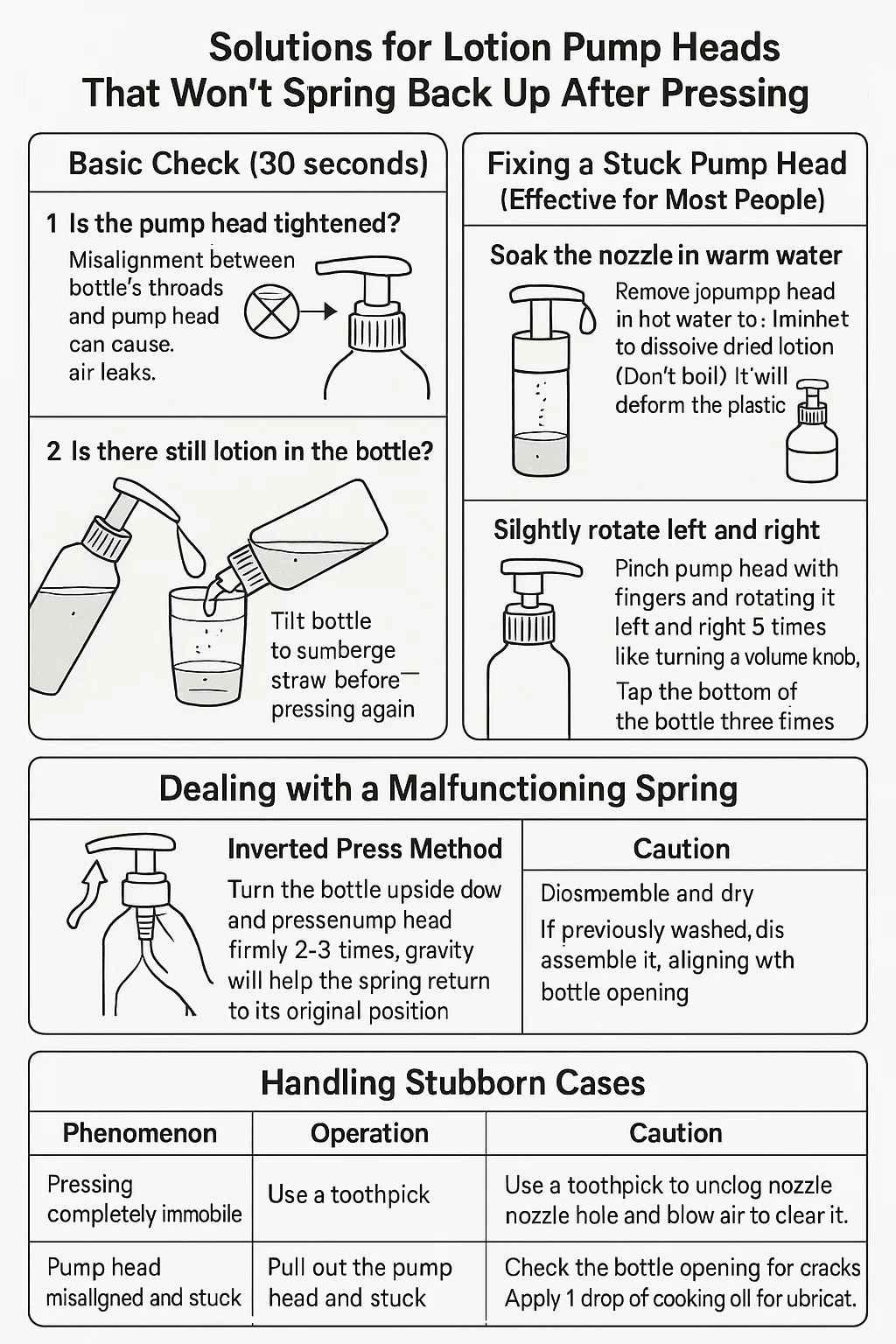 Oplossingen voor Lotionpompkoppen Dat springt niet terug na het indrukken van: