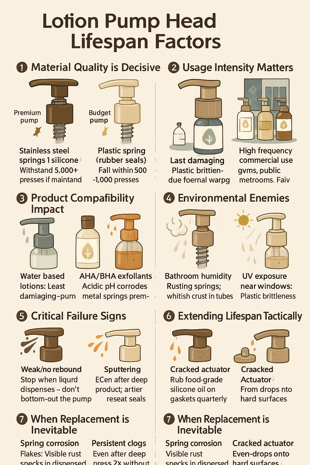 Budgetpompen (rubberen afdichtingen met plastic veren): defect binnen 500-1.000 keer drukken – veren moe, afdichtingen barsten.